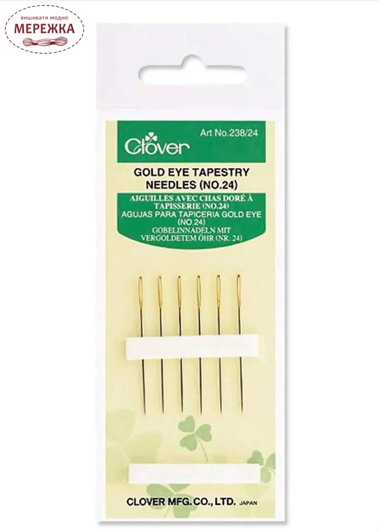 Clover набір гобеленових голок №24, 6 штук, з позолоченим вушком, 238/24