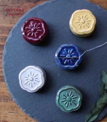 Міні-магніт для голок у формі квітки виготовлений з кераміки, але цей магніт з секретом. В середину магніту вбудований ще полірувальник для голок.