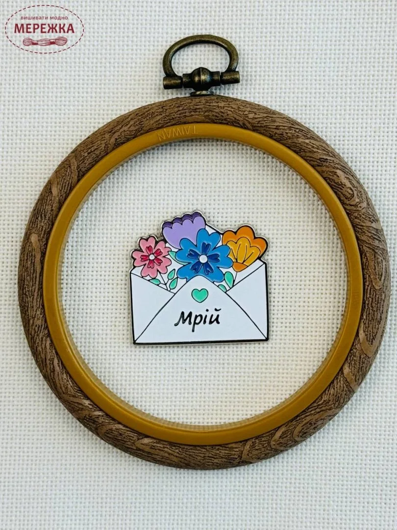 Чудовий фірмовий магнітний тримач від нашого магазину, для паркування голки під час вишивання із квітковим конвертиком.