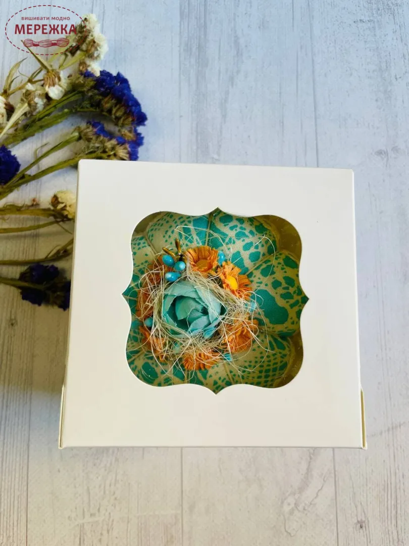 Наповнена синтепоном, у неї зручно занурювати голки чи швейні булавки.