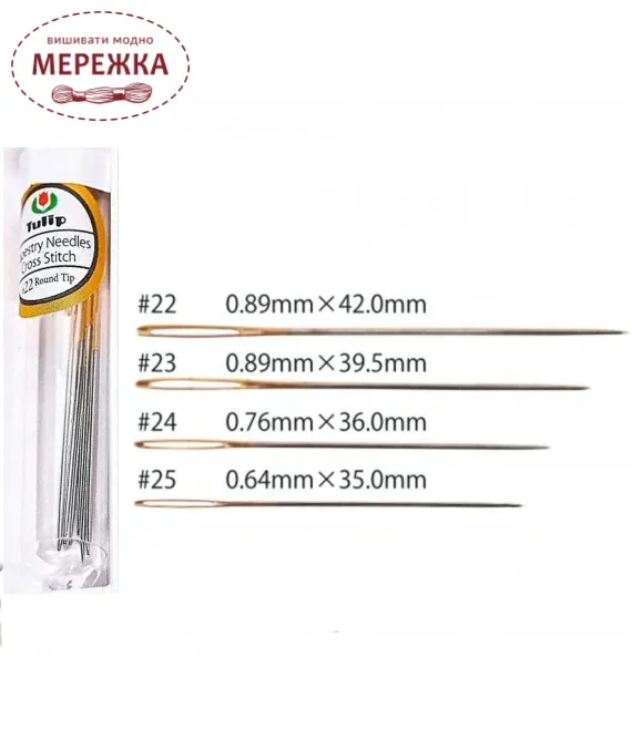 Голки високої якості Tulip ідеально підходять для вишивання хрестиком, гобеленовим швом, завдяки тупому кінчику.