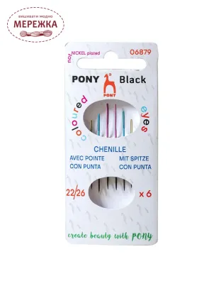Pony набір синельних голок з кольоровим вушком №22-26, 6 шт., серія Black 06879