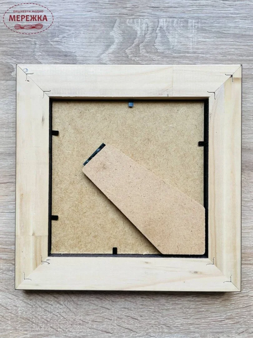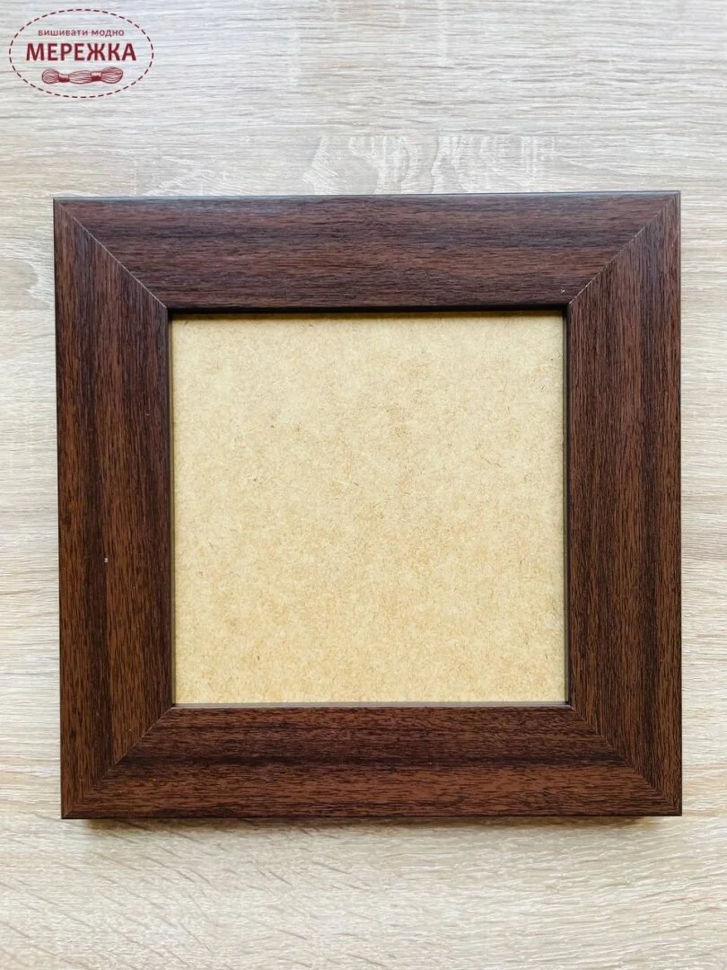 Рамка квадратної форми, виготовлена із дерев'яного багету. Має ніжку.