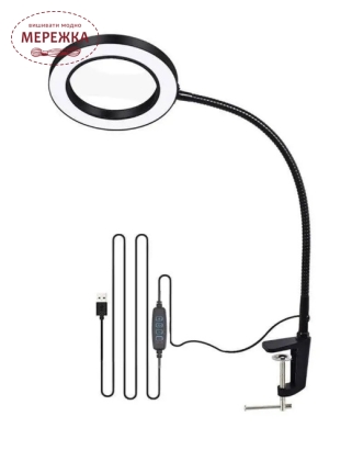 Лупа на струбцині кругла настільна з підсвічуванням призначена для візуального збільшення різних дрібних предметів або їх фрагментів. Вона використовується в косметології, біології та медицині. Така оптична система складається з лінзи, зручного пантографічного механізму та безтіньового підсвічування.