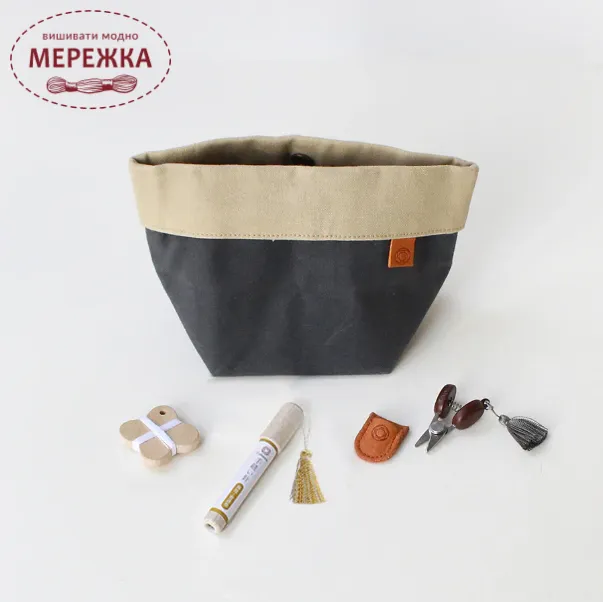 Набір аксесуарів для рукоділля із вощеним кошиком.