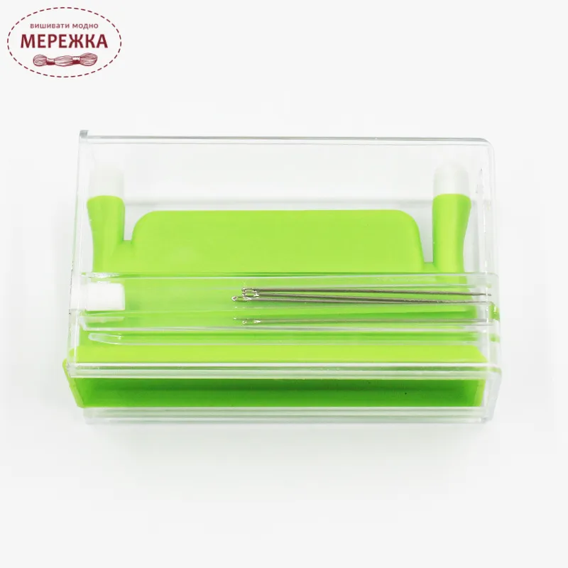 Нитковдівач містить вмонтований тубус для зберігання голок.