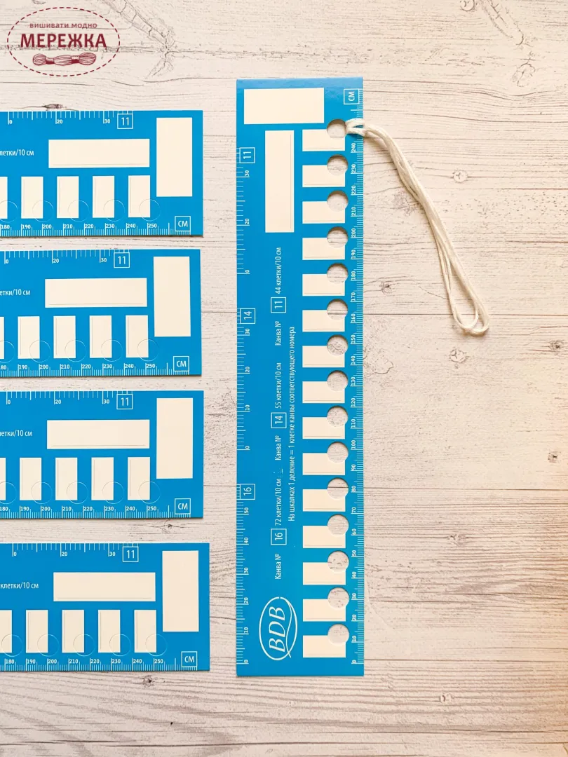Також органайзер має лінійки для визначення каунту тканини для вишивання.