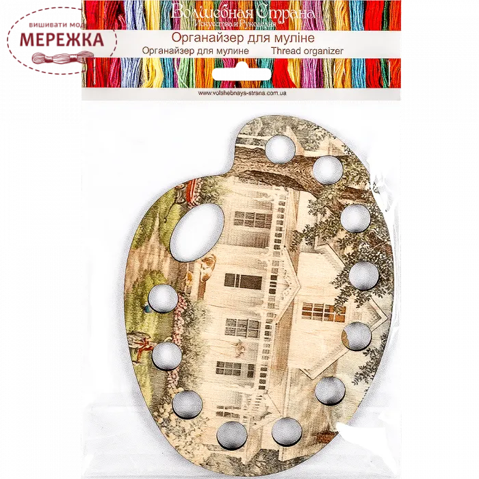 Симпатичний та практичний органайзер для муліне виготовлений з фанери, має нанесений красивий малюнок.