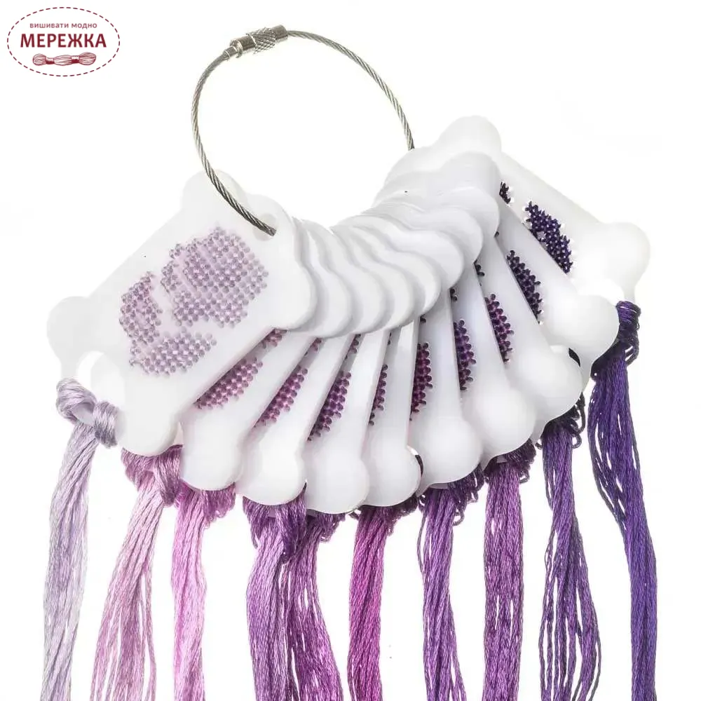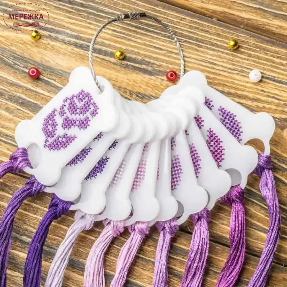 З ним можна охайно зберігати нитки, підбирати кольори та створювати маленькі зразки вишивки, щоб оцінити поєднання кольорів. Органайзер легкий, його зручно тримати в руці та об’єднувати в набір за допомогою металевого тросика.