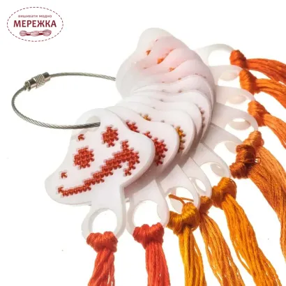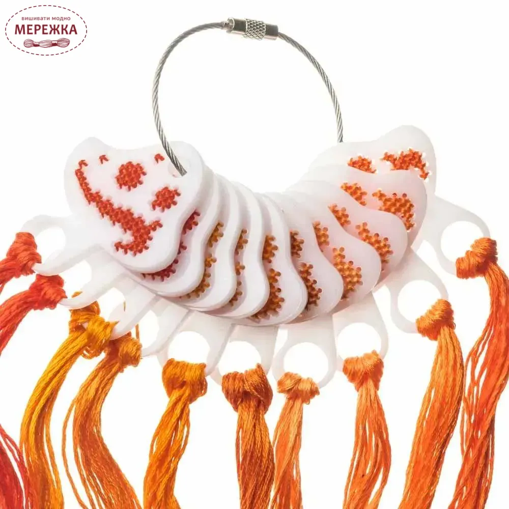 З ним можна охайно зберігати нитки, підбирати кольори та створювати маленькі зразки вишивки, щоб оцінити поєднання кольорів. Органайзер легкий, його зручно тримати в руці та об’єднувати в набір за допомогою металевого тросика.