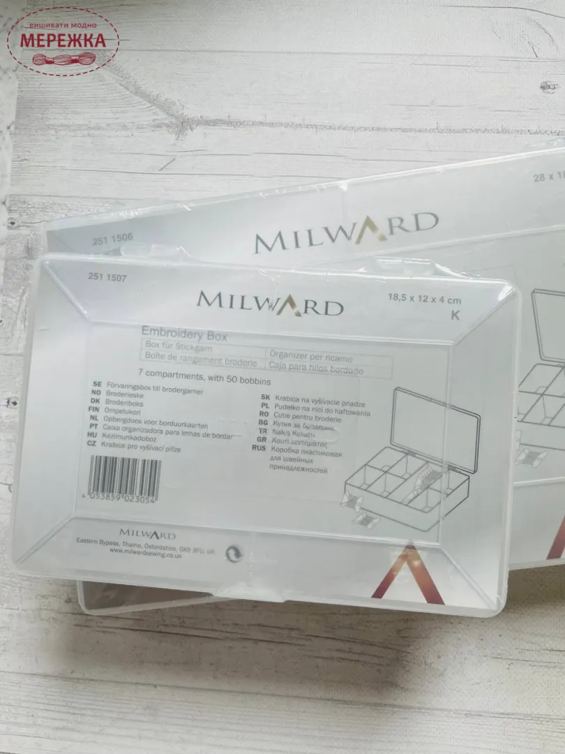 Пластиковий органайзер для муліне від фірми Milward- бестселер вже протягом багатьох років серед вишивальниць. Великим бонусом є наявність у комплекті 100 порожніх картонних бобінок.
