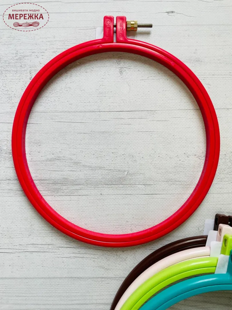 Пластикові п’яльця є одним з найбільш бюджетних варіантів, легкі та прості у роботі. Вони мають яскраву кольорову гаму, бувають круглі або прямокутні, різних розмірів та діаметрів, а також із затискачами чи без них. Для невеликих процесів ідеально підійдуть невеликі круглі.