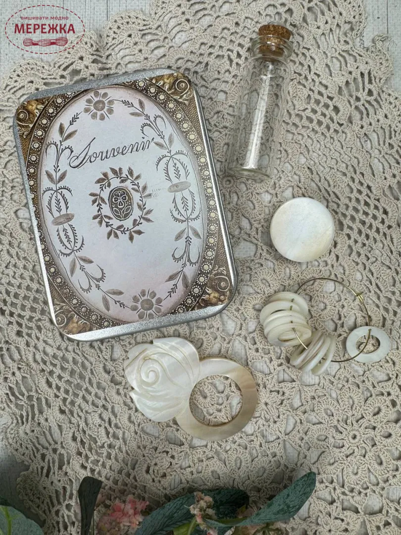 - 10 маленьких кілець з перламутром для сортування та зберігання ваших ниток.