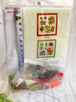 До набору входять матеріали провідних виробників: тканина Zweigart, муліне Madeira, бісер Preciosa.