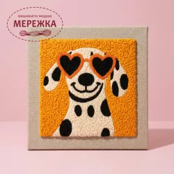 Килимова вишивка Exclusive Art Песик з квіткою, 30х30 см. (квадрат)