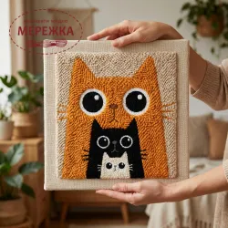 Килимова вишивка Exclusive Art Сім`я котів, 30х30 см. (квадрат)