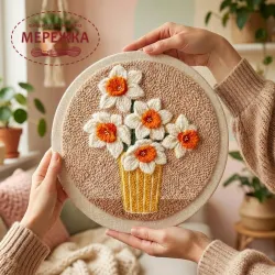 Килимова вишивка Exclusive Art Нарциси у вазі, 30 см. (круг)