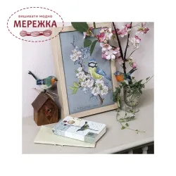 Les Brodeuses Parisiennes Схема Etude a la Mesange bleue+тканина EMLL/CRE