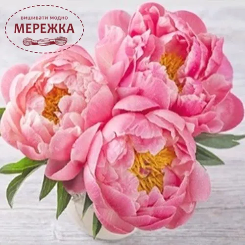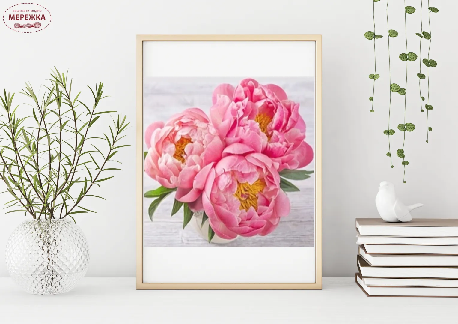 Алмазна вишивка (Алмазна мозаїка) Півонії, 30*30 см., на підрамнику МЕ20607