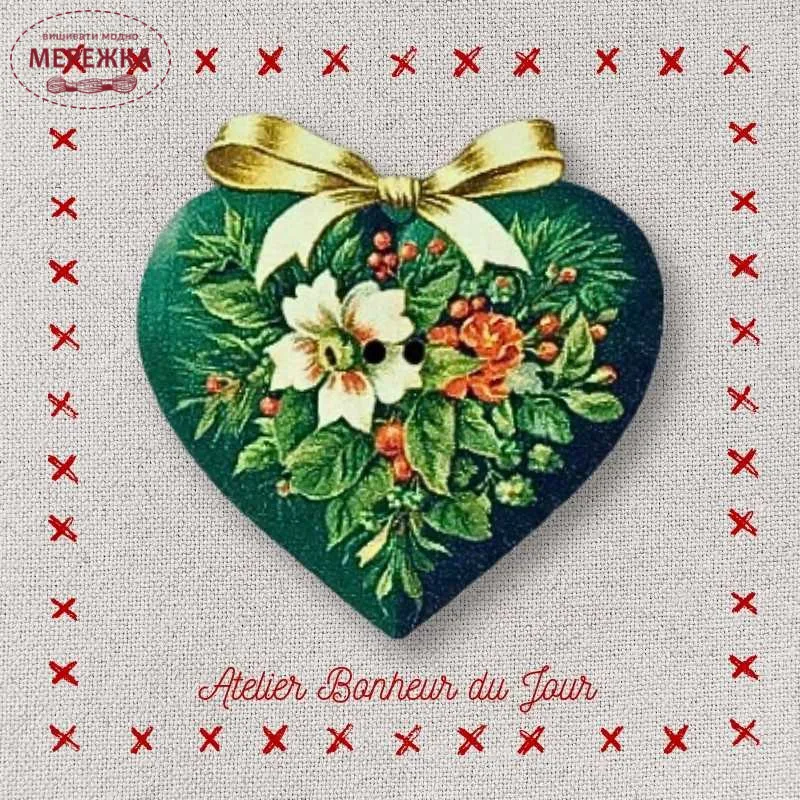 Atelier Bonheur du jour Гудзик Зелене серце PF-26