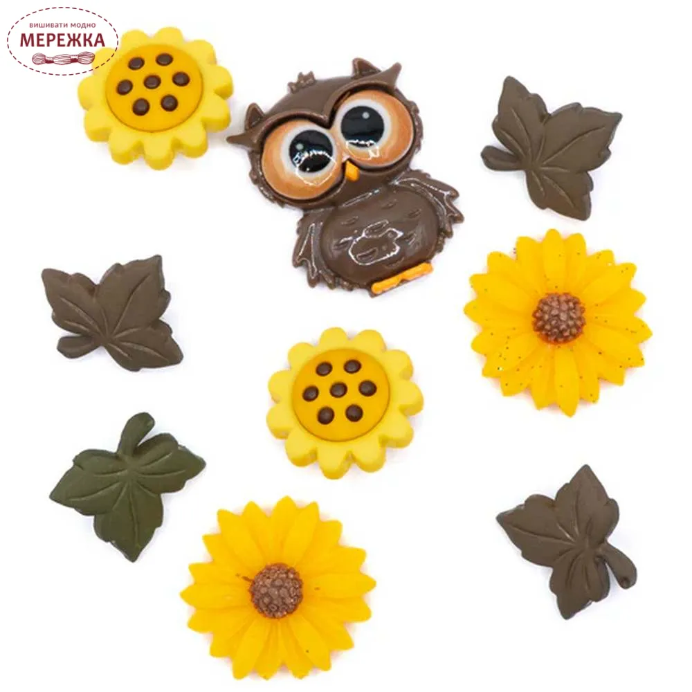 Dress It Up набір пришивних декоративних гудзиків Forest Owls 13472
