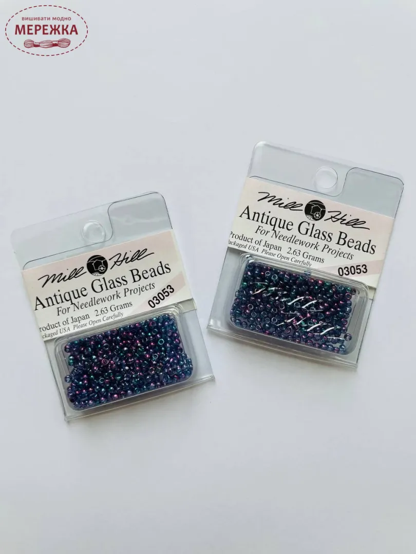Бісер Mill Hill - японського виробництва, проте розфасований в США. Він найвищої якості, не линяє під час прання, колір та розмір відповідає номеру вказаному на упакуванню.