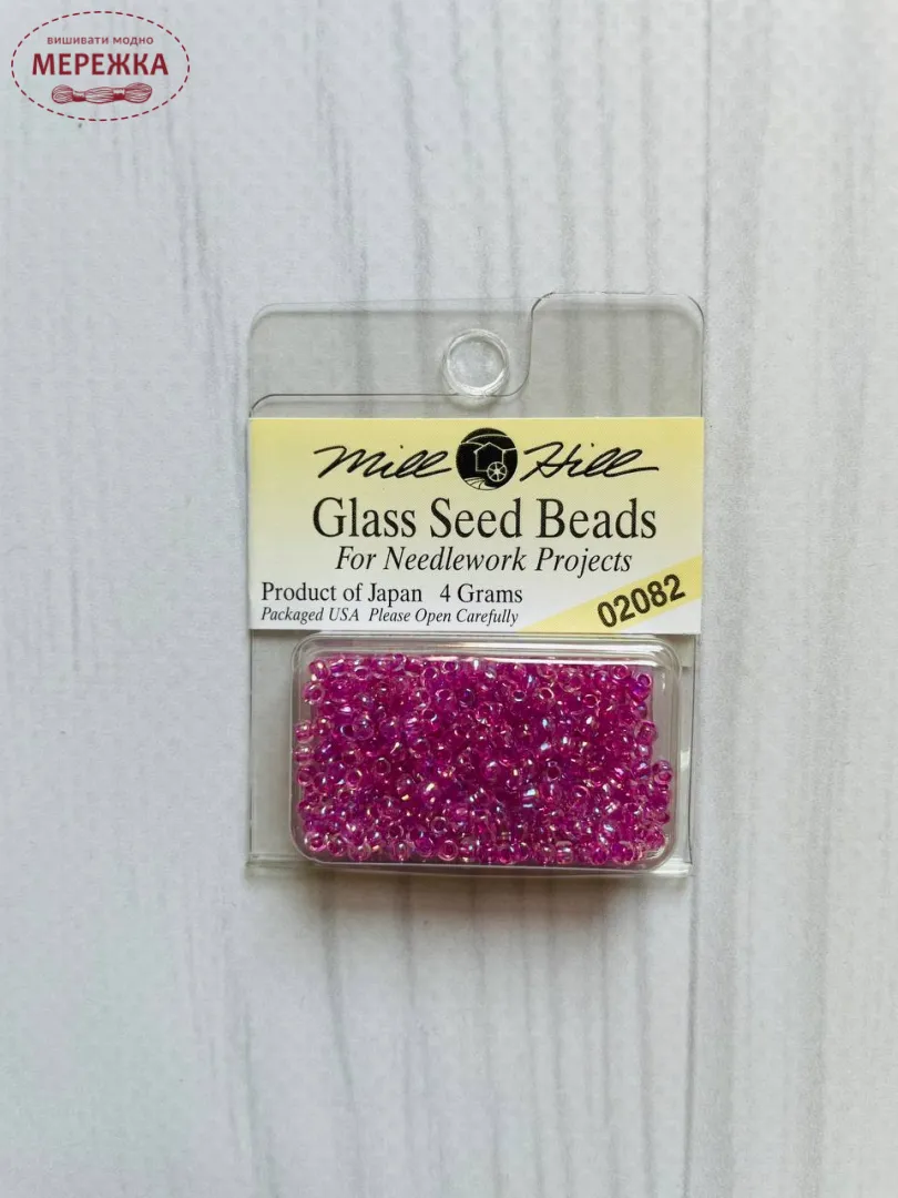 Бісер Mill Hill - японського виробництва, проте розфасований в США. Він найвищої якості, не линяє під час прання, колір та розмір відповідає номеру вказаному на упакуванню.