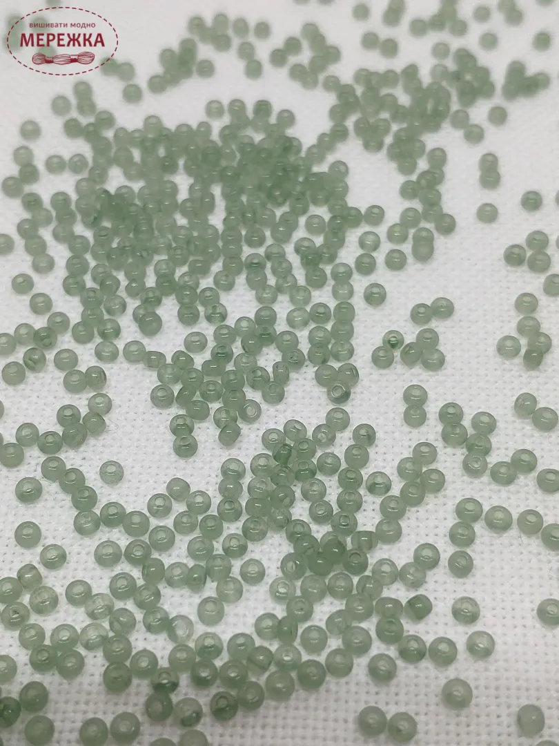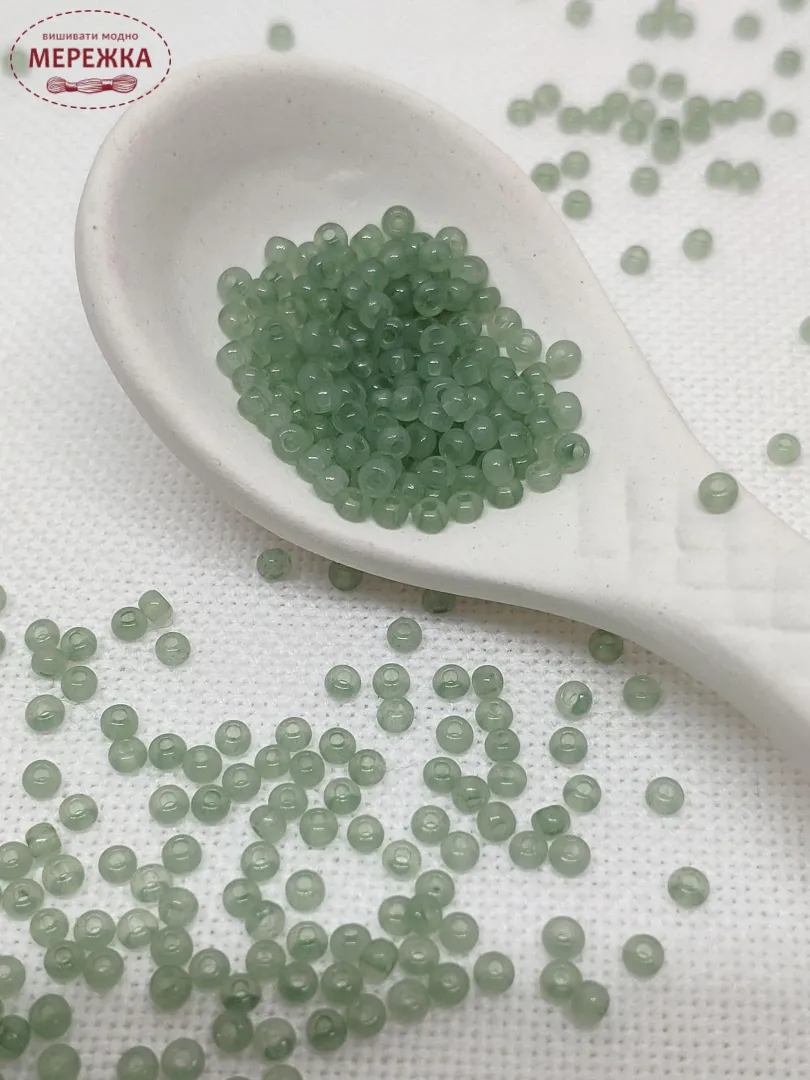 Бісер 02163 алебастр, сіро-зеленого кольору.