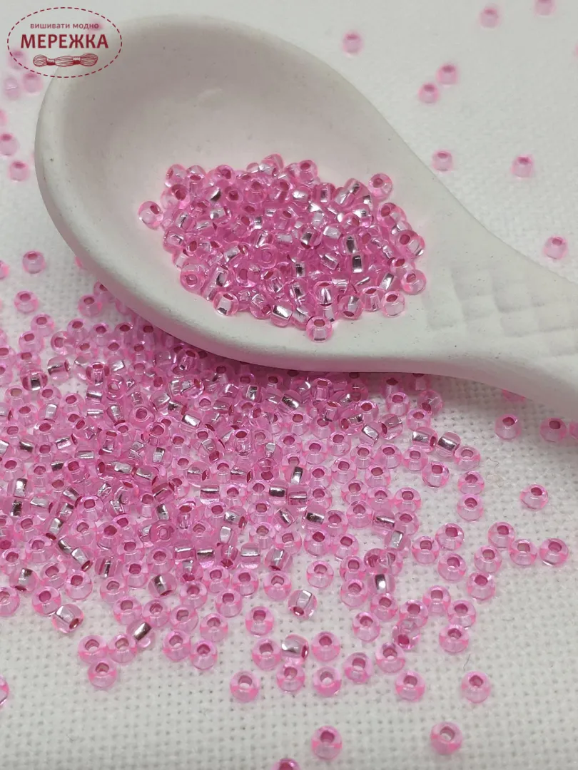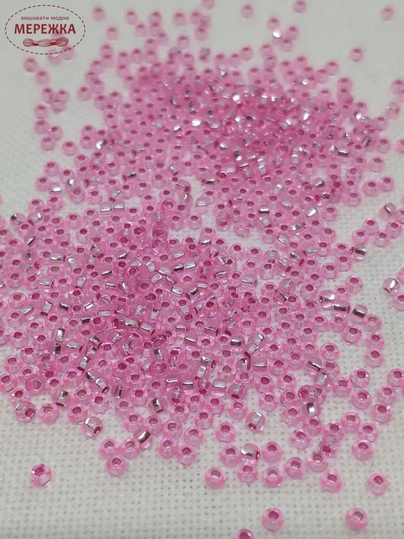 Бісер 18275 блискучий, блідо рожевого кольору.
