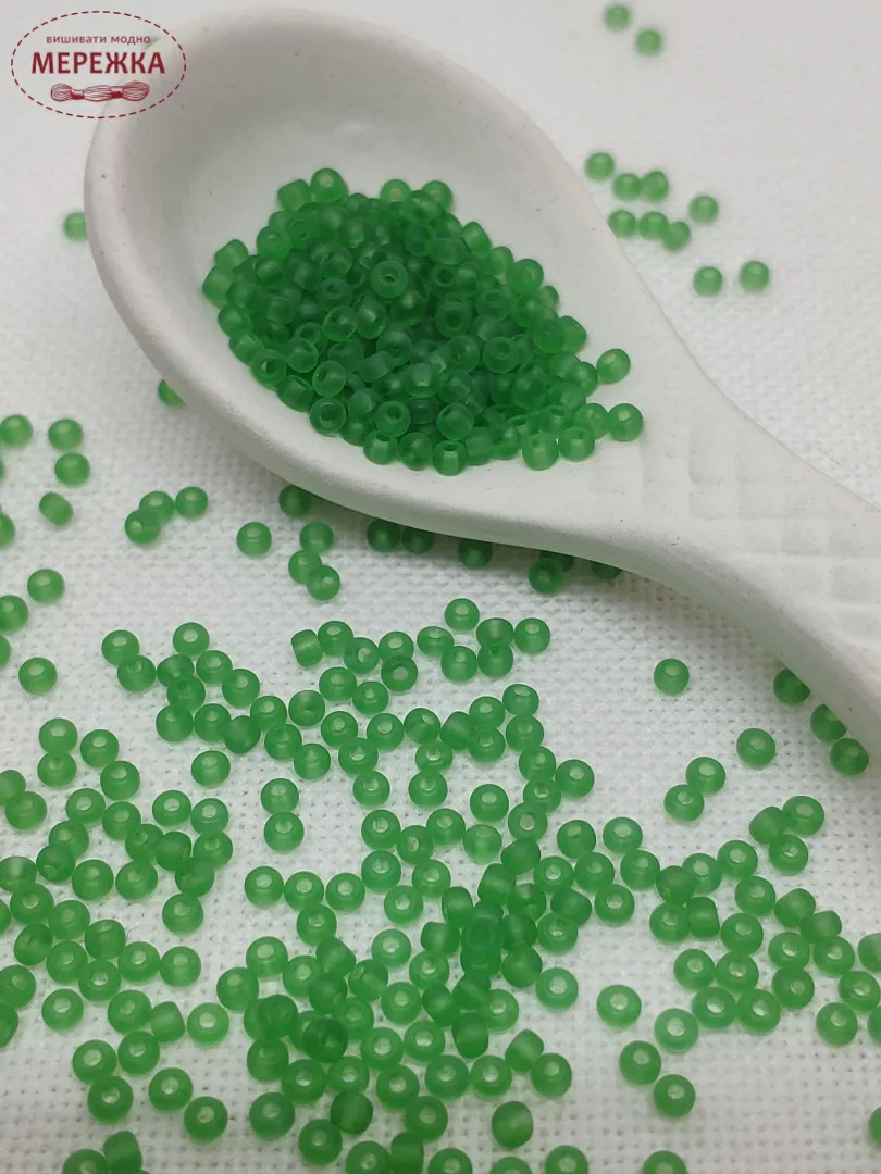 Бісер 50100 прозорий, матовий зеленого кольору.