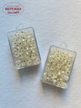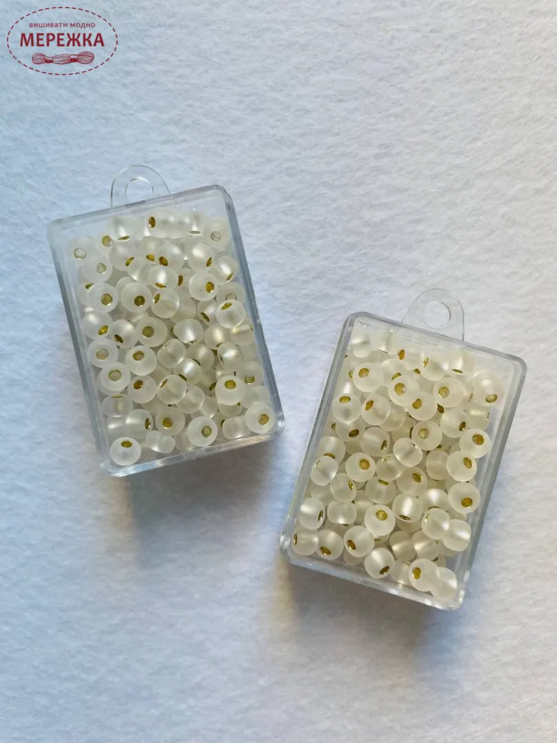 Бісер 78102 білий матовий з блискучою золотою серединкою.