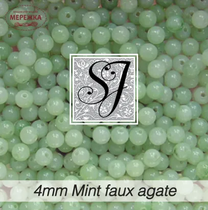 Намистини зі штучного агату розміром 4 мм імітують полірований камінь, м’яко закруглені та об’ємні з обох сторін з одним центральним отвором.