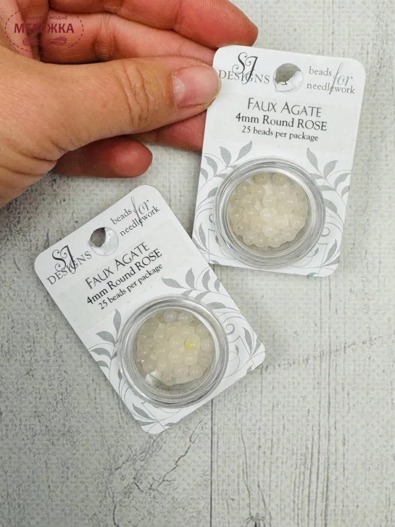 Намистини зі штучного агату розміром 4 мм імітують полірований камінь, м’яко закруглені та об’ємні з обох сторін з одним центральним отвором.