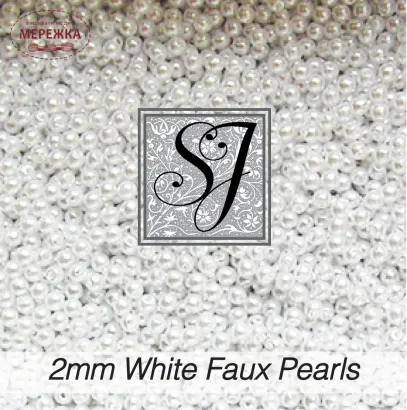 SJ Designs Faux Pearls, 2 mm Round WHITE
