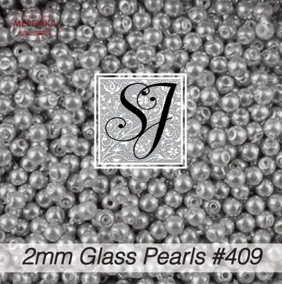 SJ Designs Glass Pearls, 2 mm Ant.Silver Luster #409