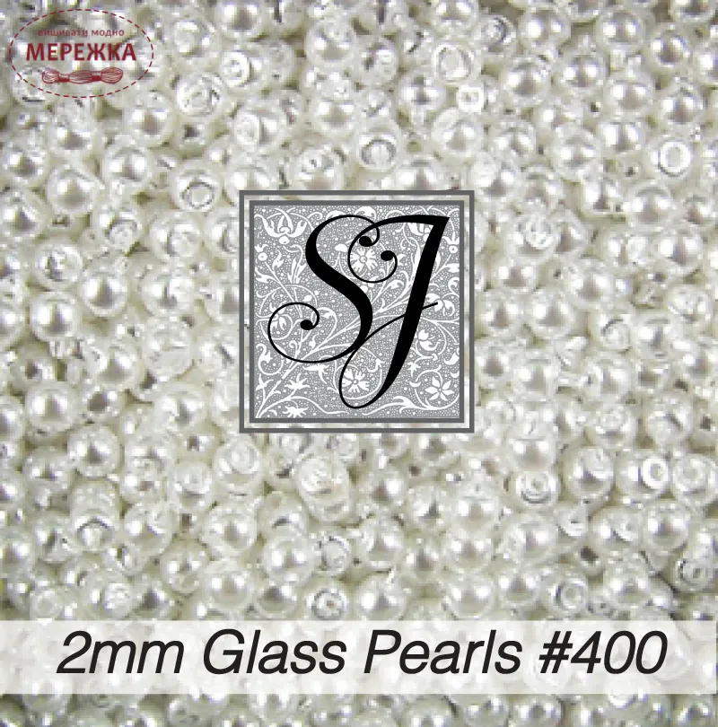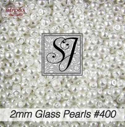 SJ Designs Glass Pearls, 2 mm White Luster #400