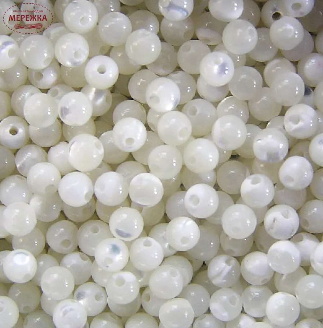Справжні перламутрові бусини, вирізьблені у вигляді сфер; кожен має тонкий отвір (вам може знадобитися бісерна голка) і дещо відрізнятиметься за кольором і формою.