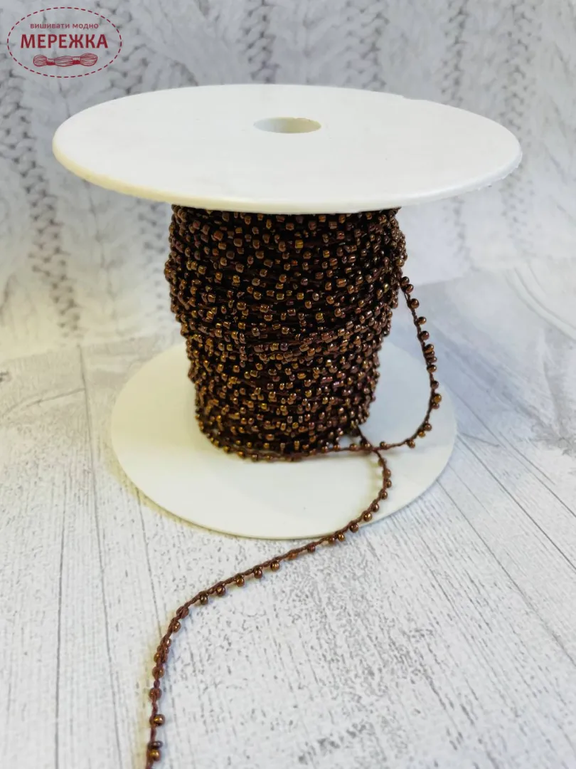 Шнур плетений декоративний, з бісеру, колір коричневий
