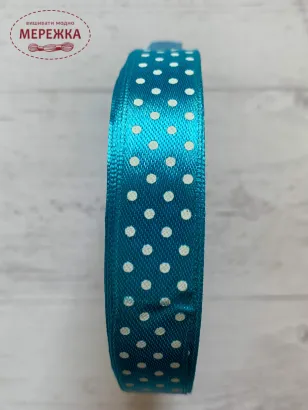 Стрічка атласна в горошок голуба 1,6 см.