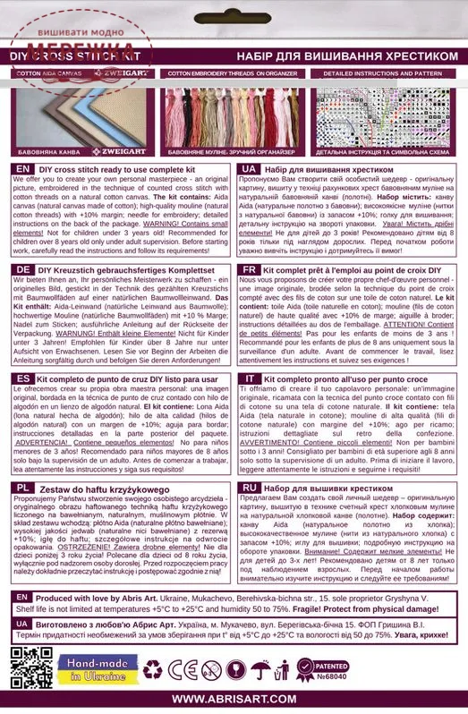 Виробник комплектує свої набори якісними матеріалами від провідних європейських виробників. А небанальні сюжети, ретельно продумані схеми та чіткі інструкції зроблять вишивальний процес легким та захопливим!