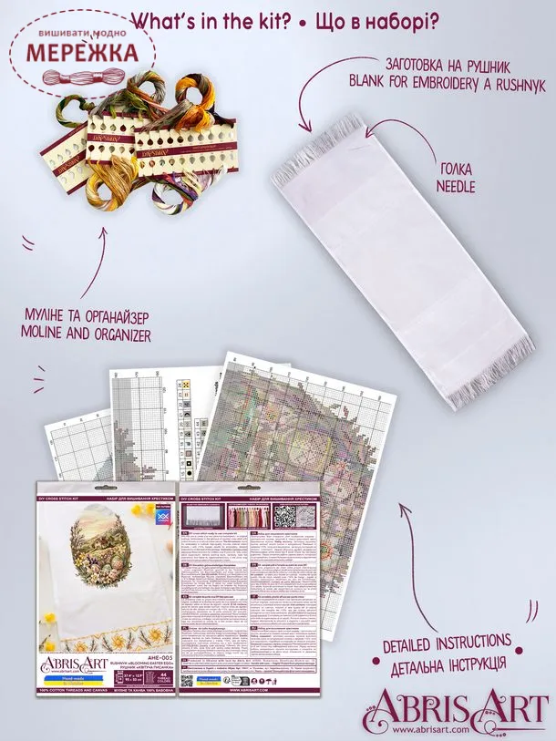 Набір для вишивання хрестиком від вітчизняного виробника Abris Art "Квітуча писанка".