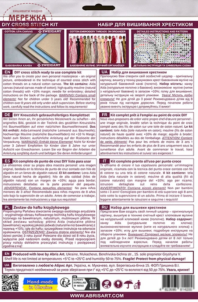 Abris Art створюють свої набори спеціально для того, щоб ви провели щасливі години вишиваючи та насолодилися кінцевим результатом, адже він неодмінно принесе вам радість.