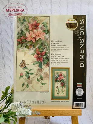 Набір для вишивання хрестиком Dimensions Butterfly And Clematis (Метелик та клематиси) 13686