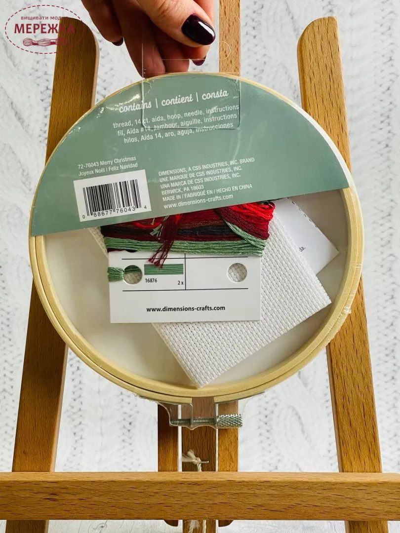 До набору додаються якісні букові п'яльця, на яких ви будете вишивати дизайн, а потім можна зрізати залишки тканини і у п'яльцях повісити картину на стіну.