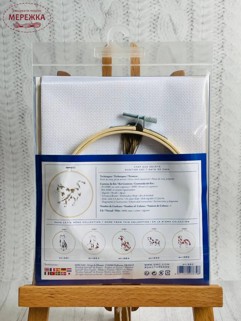 Набір для вишивання хрестиком DMC Мисливський кіт+п'яльця ВК1882