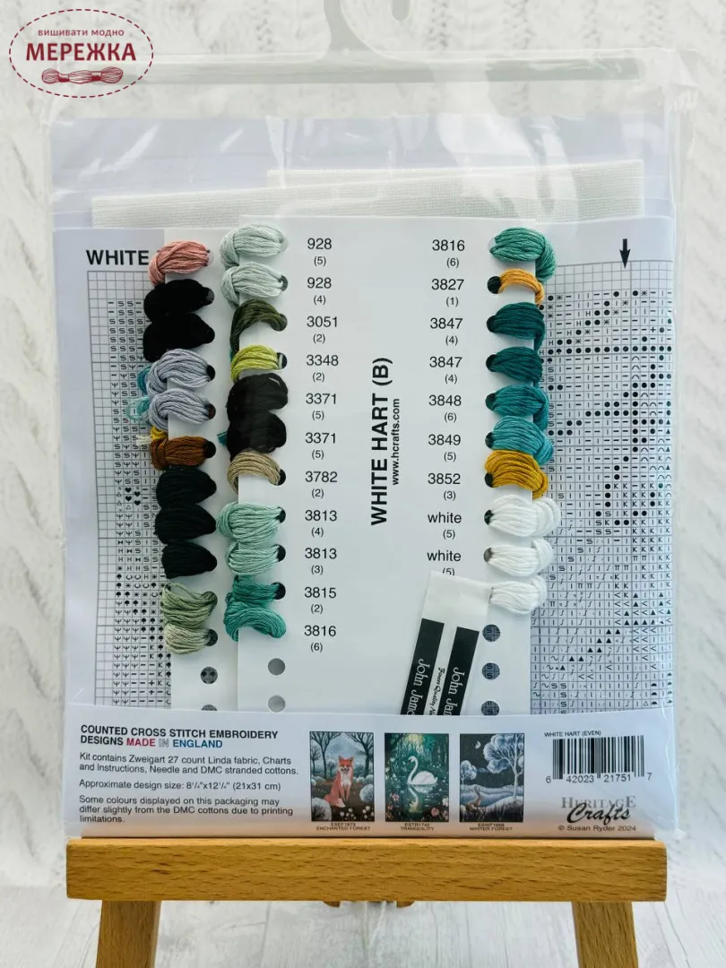 Набори містять: тканину Zweigart, муліне DMC, голку та чіткі схеми та інструкції.