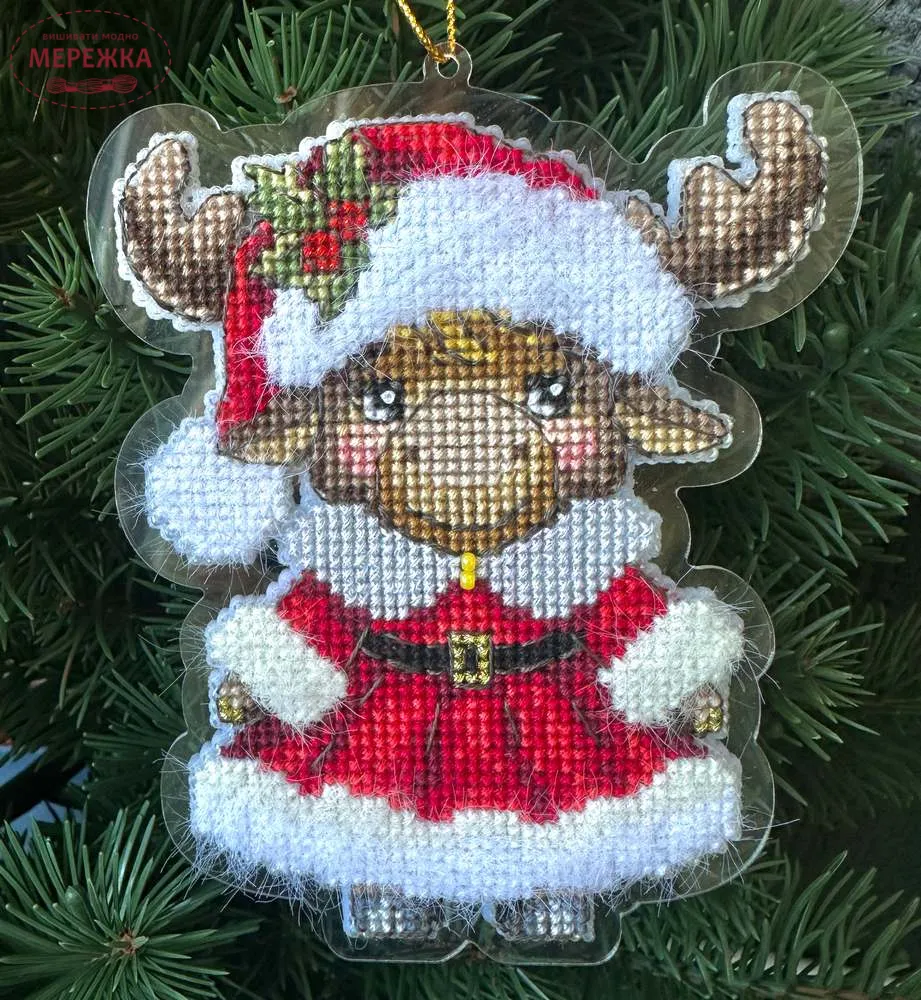 Набір для вишивання хрестиком Kingdom of Handmade на прозорій основі. Лосяш Пані Санта RL-05