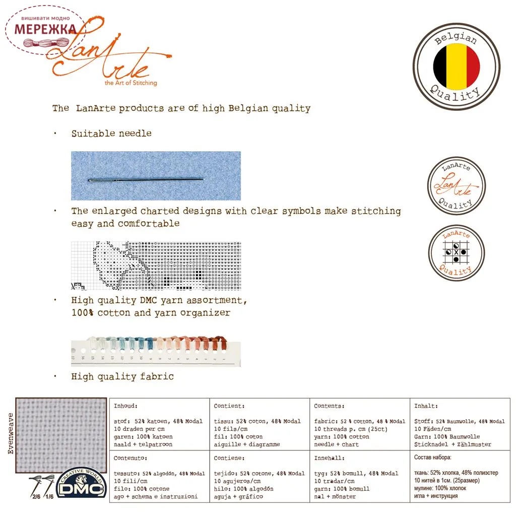 Фірма Lanarte відома своїми якісними наборами, адже вони укомплектовані найкращими матеріалами, провідних європейських виробників.