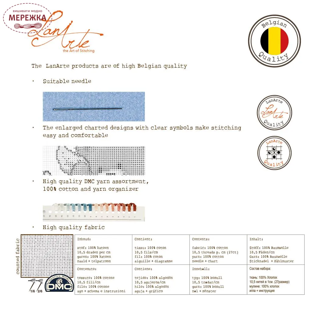 Фірма Lanarte відома своїми якісними наборами, адже вони укомплектовані найкращими матеріалами, провідних європейських виробників.
