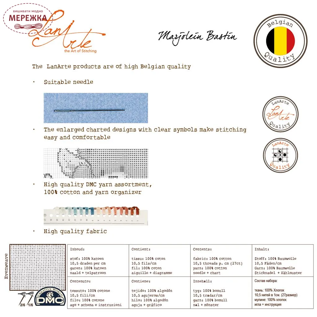 Фірма Lanarte відома своїми якісними наборами, адже вони укомплектовані найкращими матеріалами, провідних європейських виробників.